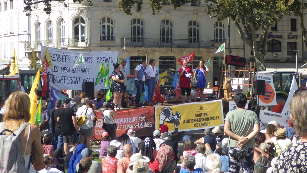 Légende : cette banderole déployée lors du Village de l’eau à Melle en juillet 2024 résume la nécessité pour le peuple de s’organiser, résister et participer aux décisions, seuls processus démocratiques réellement capables d’amorcer un véritable changement © Pierre Grillet